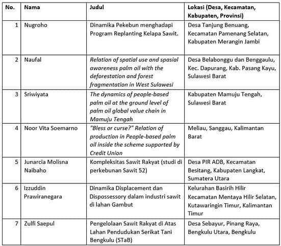 Selain pertemuan dan diskusi intensif di kelas, pada struktur pelaksanaan SAK 2019 juga terdapat penelitian lapangan, penulisan karya ilmiah dan publikasi, serta penyusunan Policy Brief. Pada SAK tahun ini, dari 20an peserta yang mengikuti kelas intensif, penyelenggara meloloskan tujuh orang yang berkesempatan untuk melakukan penelitian lapangan selama 2-3 bulan (Desember-Februari) dan mendapatkan pendampingan dari para ahli hingga tahap penyelesaian tulisan/artikel ilmiah hasil penelitian yang dilaksanakan pada pertengahan Maret 2020. Berikut daftar nama peserta terpilih beserta topik penelitiannya: